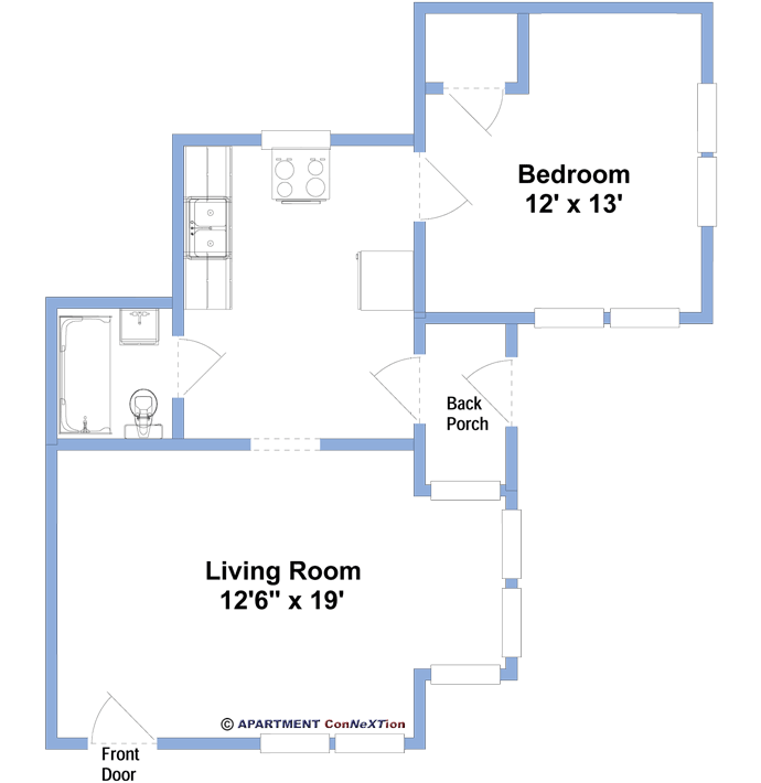 Large 12x13 wood paneled living room, 6x7 sunroom dinette alcove. Big 10x12 kitchen with wood cabinets. Queen 12x13 bedroom with windows to south & west. Bathroom with full tub/shower.