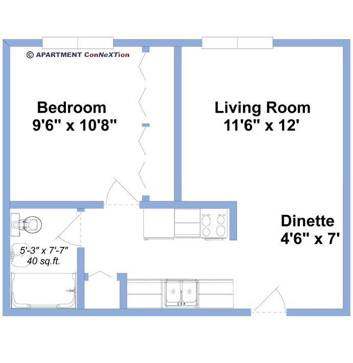 Fantastic 1-bedroom value. Comfortable 11x12 living room with dinette nook. Galley kitchen. Full 10x11 bedroom with double 5' closets. New carpeting. Clean and economical electric heat. Rent $450 to $475.
